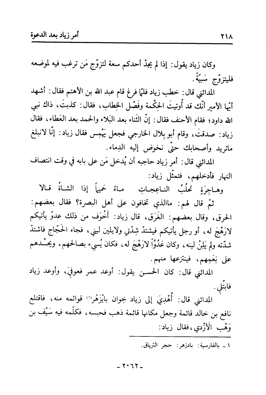 561- الْمَدَائِنِيّ، قَالَ: لقي زيادًا رجل نشأ بالأهواز فَقَالَ: أصلح اللَّه الأمير إن أبينا مات، وإن أخونا شد «5» على ميراثنا فأخذه، فَقَالَ: لا رحم اللَّه أباك ولا حفظ أخاك، ولا أحسن الخلافة عليك، فما ضيّعت من نفسك أكثر ممّا ضاع من مالك «6» .