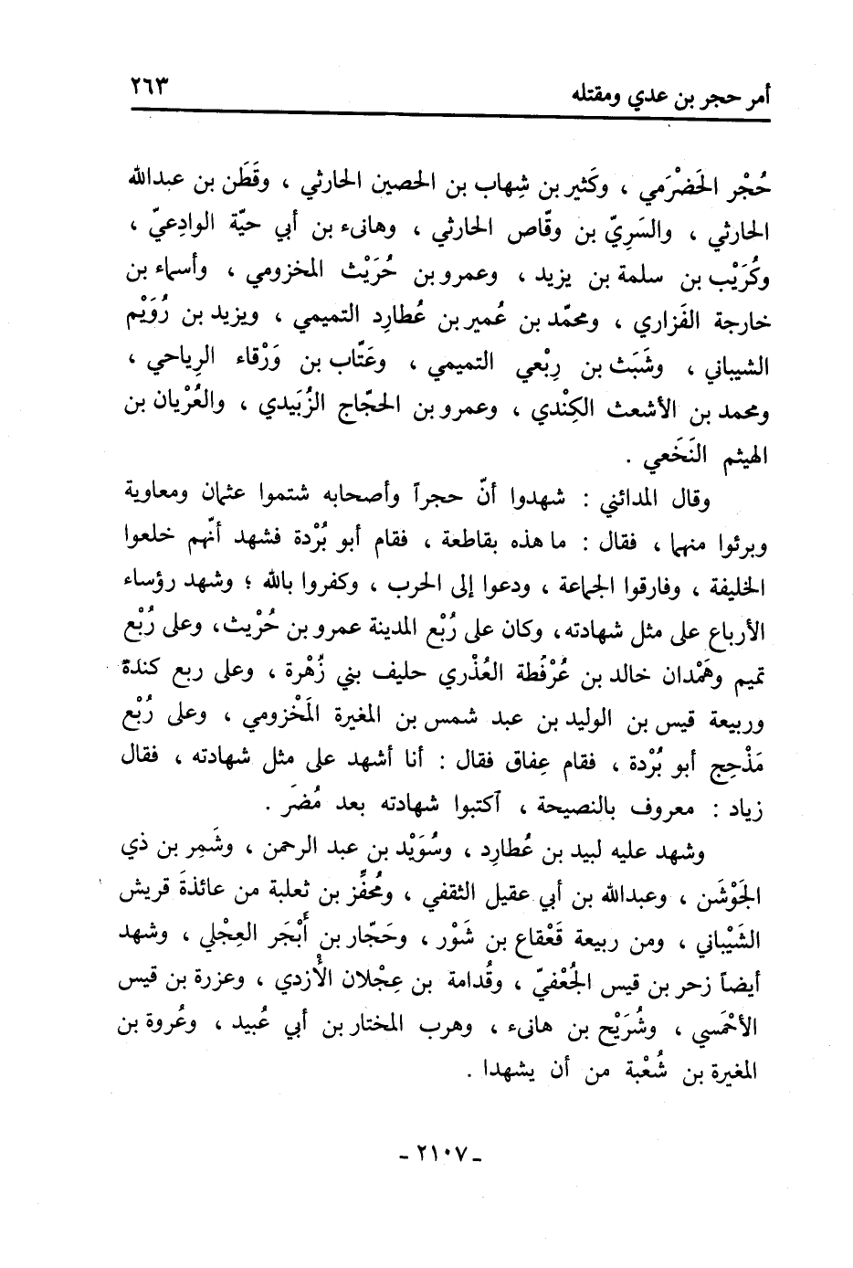 687- وقد قيل: أن ربعي بْن حراش «1» كان ممن حمل مع حجر، فكلم «2» فيه يزيد ابن الحر العبسي، فخلى سبيله.