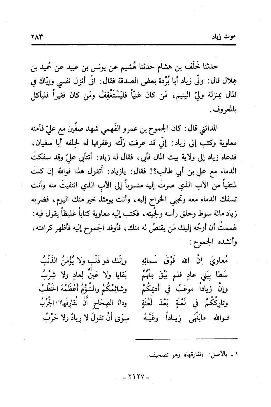759- الطبري 2: 166 وابن الأثير 3: 414 وعيون الأخبار 1: 235 وتذكرة ابن حمدون: 109/ أوفي بعضه انظر: 640، 641 حيث (كما في الطبري وابن الأثير) كان عبد الله بن عمرو قبل عبيد الله بن زياد واليا على البصرة، وعزل عنها لأنه حدّ رجلا في شبهة، وعن عزل عبيد الله قارن بالطبري 2: 190- 191 وابن الأثير 3: 431 760- سيورده البلاذري في الورقة 870/ أ (من نسخة س) وقارن بالطبري 3: 480