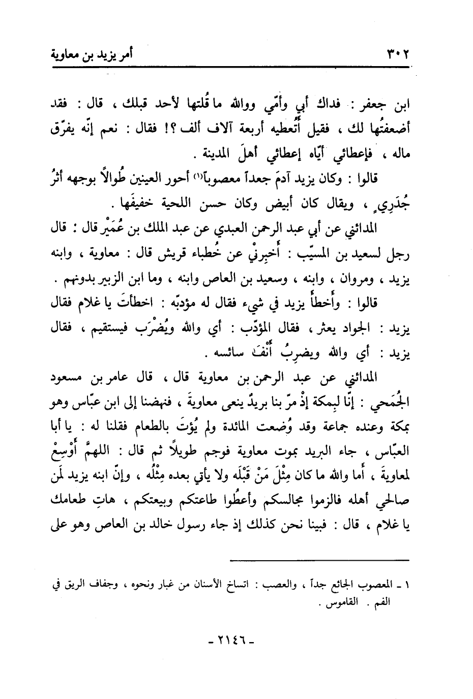 799- وقد روي أيضًا أن الحسين أتى الوليد فَقَالَ له الوليد: قد آن أن تعلم بموت (827) مُعَاوِيَة وهو فِي مواليه وفتيانه، فلما رأى «3» عنده مروان، وقد كانت بينه وبين الوليد تلك النفرة قَالَ: الصلة خير من القطيعة، والصلح خير من العداوة، وقد آن لكما أن تجتمعا، أصلح اللَّه ذات بينكما، فلم يجيباه بشيء، وأقرأه الوليد كتاب يزيد ونعى إليه مُعَاوِيَة، ودعاه إلى البيعة، فَقَالَ: إنا لله وإنا إليه راجعون، رحم اللَّه مُعَاوِيَة وأعظم لك الأجر، وأما البيعة فإن مثلي لا يبايع سرًا ولا أراك ترضى مني إلا بإظهارها على رؤوس الناس، فإذا خرجت إليهم فدعوتهم إلى البيعة دعوتنا فكان أمرنا واحدًا، وكان الوليد رجلًا محبًا للعافية فَقَالَ: انصرف على اسم اللَّه حتى تبايع مع جماعة الناس، فَقَالَ مروان: لئن فارقك الساعة لا قدرت منه على مثلها أبدًا حتى يكثر القتلى بينكم وبينه، احبس الرجل فلا يخرج من عندك حتى يبايع أو تضرب عنقه، قَالَ: فوثب الحسين فقال: يا ابن الزرقاء كذبت والله (و) لؤمت «4» لا تقدر ولا هو على ضرب عنقي، ثم خرج فَقَالَ مروان للوليد: لتندمن على تركك إياه، فَقَالَ: يا مروان إنك أردت بي التي فيها هلاك ديني، واللَّه ما أحب أن أملك الدنيا بحذافيرها على أن أقتل حسينًا، إن الذي يحاسب بدم الحسين لخفيف الميزان عند اللَّه يوم القيامة.