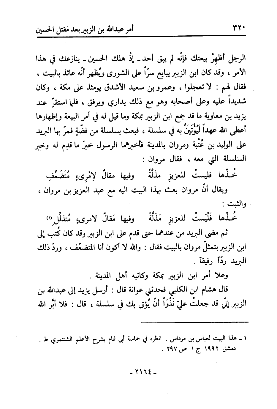 830- وقال عوانة: كان مسور بْن مخرمة وفد إلى يزيد قبل ولاية عثمان بْن محمد، فلما قدم شهد عليه بالفسق وشرب الخمر، فكتب إلى يزيد بذلك فكتب إلى عامله يأمره أن يضرب مسورا الحدّ، فقال ابو حرّة «3» :
