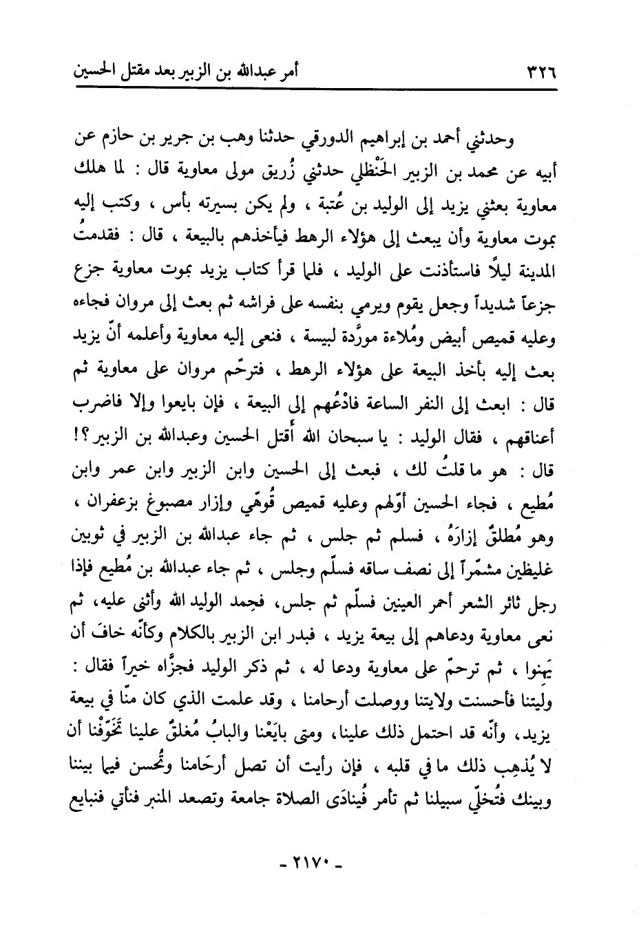 843- ومن رواية الواقدي: إن مروان (840) والأمويين رجعوا إلى المدينة مرتهم الأولى فلم يعيبوا على أهل المدينة فكانوا بها حتى أمر ابْن الزُّبَيْرِ بإشخاصهم بعد موت يزيد.