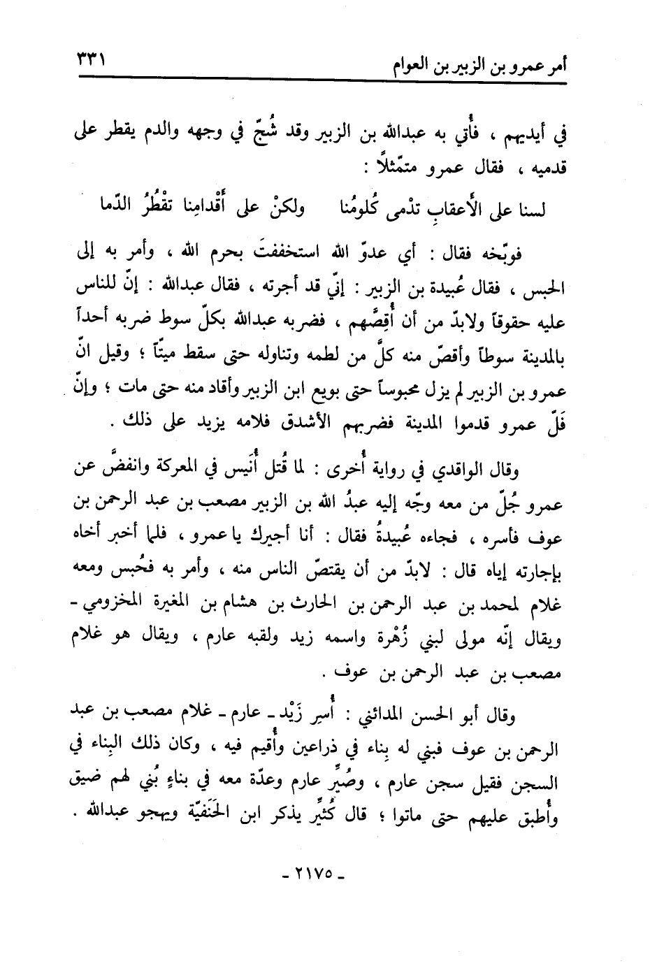 اللَّهم إنك تعلم إني لم أغش خليفة قط فِي سر ولا علانية، وأن أزكى عمل عملته قط فِي نفسي بعد شهادة أن لا إله إلا اللَّه قتلي أهل الحرة، ولئن دخلت النار بعد قتلهم إني لشقي، ثم قَالَ لحصين بْن نمير بْن ناتل «1» بْن لبيد بْن جعثنة السكوني: يا ابْن بردعة الحمار لولا عهد «2» أمير المؤمنين إلي فِي توليتك أمر هذا الجيش إن حدث بي حدث لوليت حبيش بْن دلجة، فإذا قدمت مَكَّة فناجز عدوك، وإياك أن تمكن قريشًا من أذنيك «3» فإنهم قوم خدع، وإذا لقيت عدوك فالوقاف ثم الثقاف ثم الانصراف، ثم أعلم الناس بأن «4» واليهم الحصين.