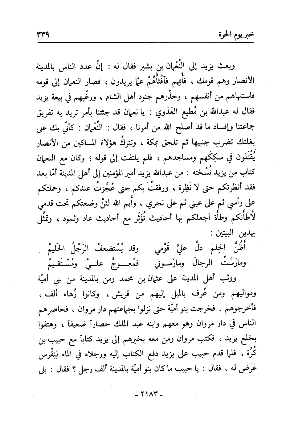 874- وقال لي مصعب بْن عبد اللَّه الزبيري: الرواة تدخل من خبر هذا الحصار فِي هذا وخبر هذا فِي هذا- قَالَ: ودعا عبد اللَّه لنفسه واجتمع على خلافته بعد موت يزيد وكان قبل ذلك يدعو إلى الشورى.