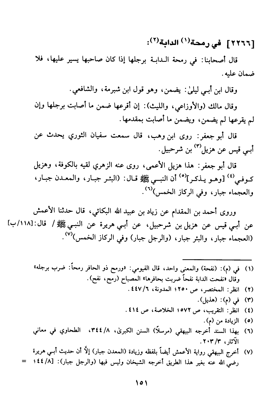قَالَ أَبُو جَعْفَر هَذَا هزيل الْأَعْمَى روى عَنهُ الزُّهْرِيّ لقِيه بِالْكُوفَةِ وهزيل كُوفِي وَهُوَ يذكر أَن النَّبِي صلى الله عَلَيْهِ وَسلم قَالَ الْبِئْر جَبَّار والمعدن جَبَّار والعجماء جَبَّار وَفِي الرِّكَاز الْخمس