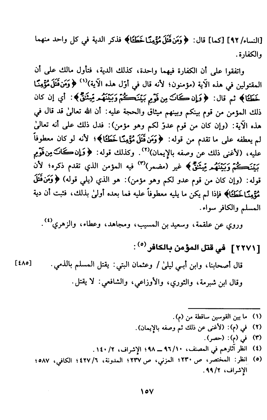 النِّسَاء 92 كَمَا قَالَ {وَمن قتل مُؤمنا خطأ} فَذكر الدِّيَة فِي كل وَاحِد مِنْهُمَا وَالْكَفَّارَة