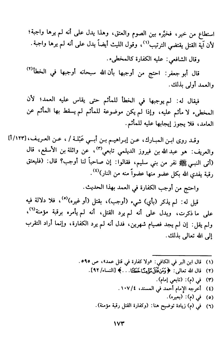 قَالَ أَبُو جَعْفَر احْتج من أوجبهَا بِأَن الله سُبْحَانَهُ أوجبهَا فِي الْخَطَأ والعمد أولى بذلك