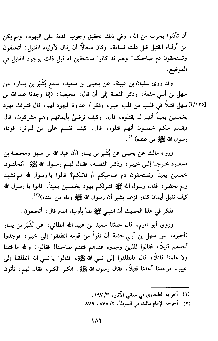 أَن تأذنوا بِحَرب من الله وَفِي ذَلِك تَحْقِيق وجوب الدِّيَة على الْيَهُود وَلم يكن من أَوْلِيَاء الْقَتِيل قبل ذَلِك قسَامَة وَكَانَ محالا أَن يُقَال لأولياء الْقَتِيل أتحلفون وتستحقون دم صَاحبكُم وهم قد كَانُوا مستحقين لَهُ قبل ذَلِك بِوُجُود الْقَتِيل فِي الْموضع