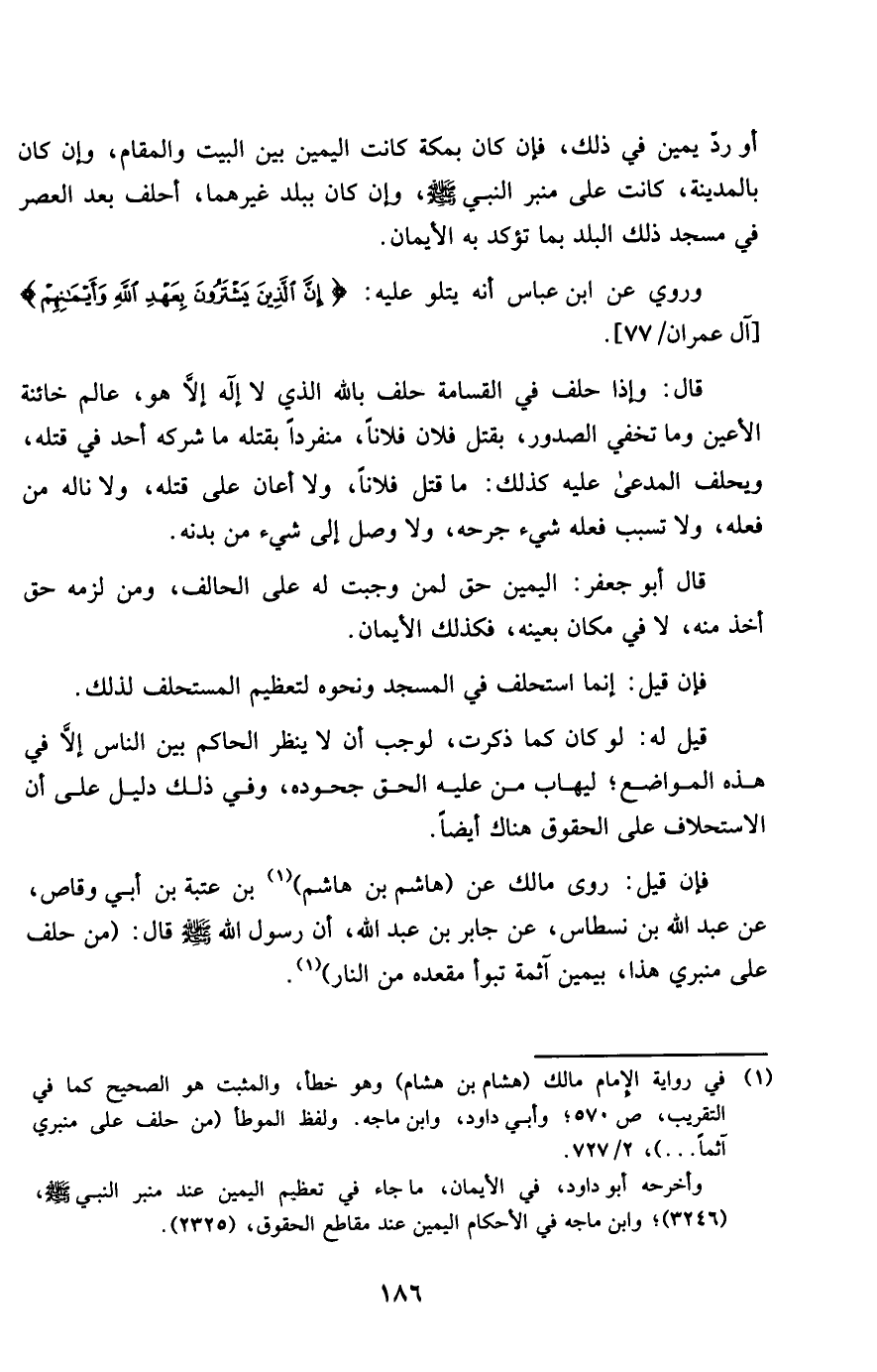 فَإِن قيل روى مَالك عَن هَاشم بن هَاشم بن عتبَة بن أبي وَقاص عَن عبد الله بن نسطاس عَن جَابر بن عبد الله أَن رَسُول الله صلى الله عَلَيْهِ وَسلم قَالَ من حلف على منبري هَذَا بِيَمِين آثمة تبوأ مَقْعَده من النَّار