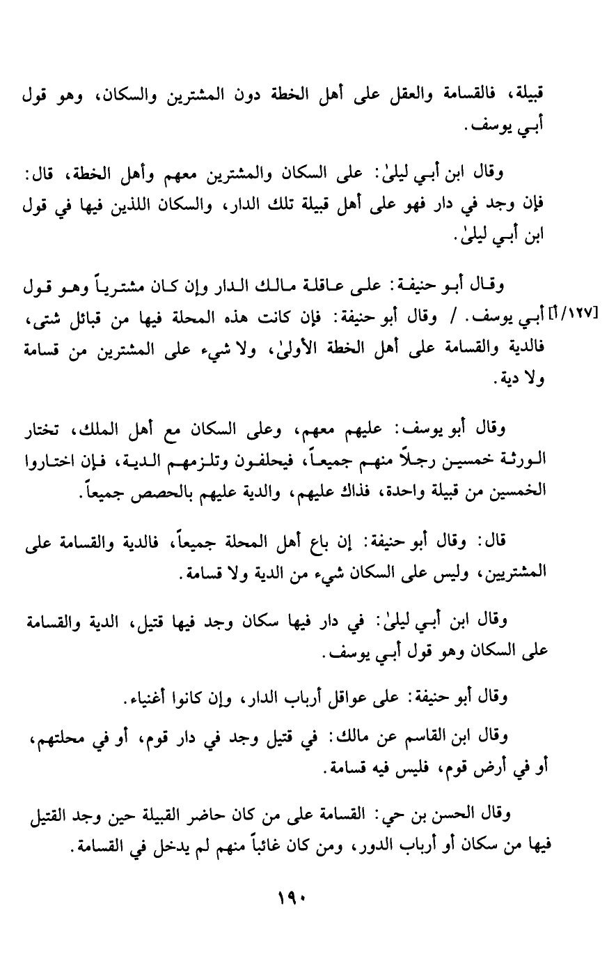 قَبيلَة فالقسامة وَالْعقل على أهل الخطة دون المشترين والسكان وَهُوَ قَول أبي يُوسُف