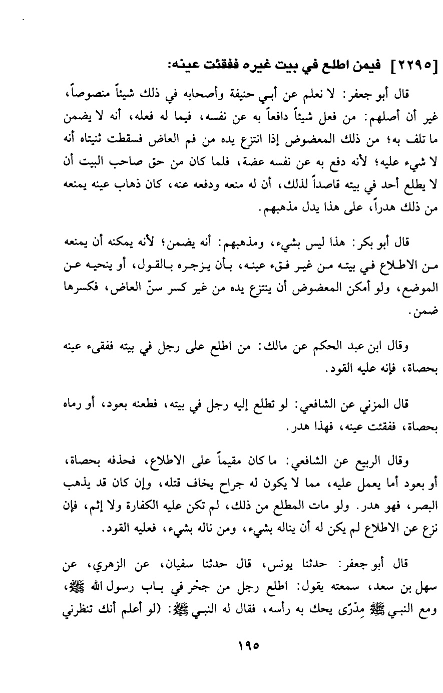 2295 - فِيمَن اطلع فِي بَيت غَيره ففقئت عينه