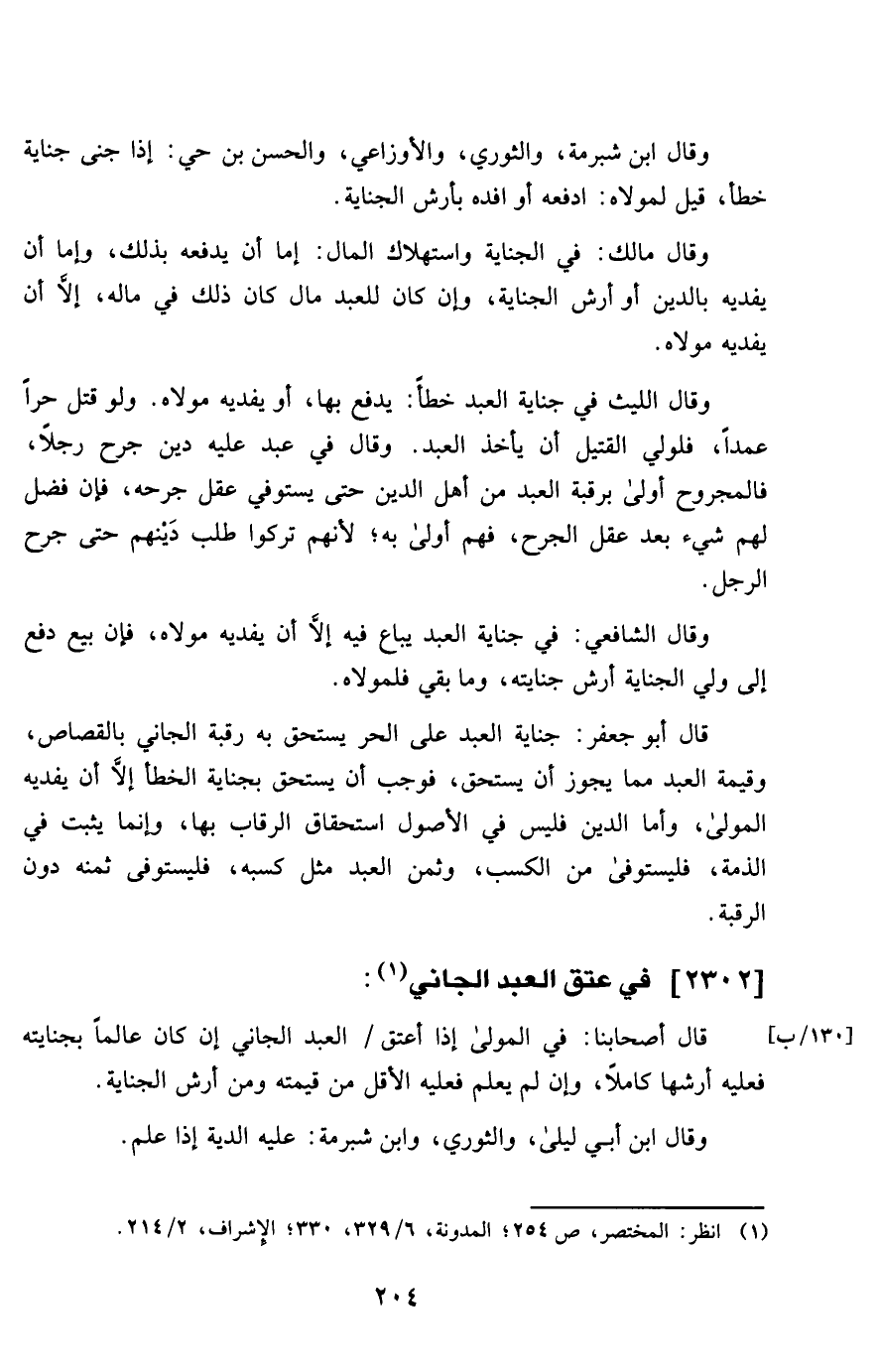 وَقَالَ ابْن شبْرمَة وَالثَّوْري وَالْأَوْزَاعِيّ وَالْحسن بن حَيّ إِذا جنى جِنَايَة خطأ قيل لمَوْلَاهُ ادفعه أَو افده بِأَرْش الْجِنَايَة