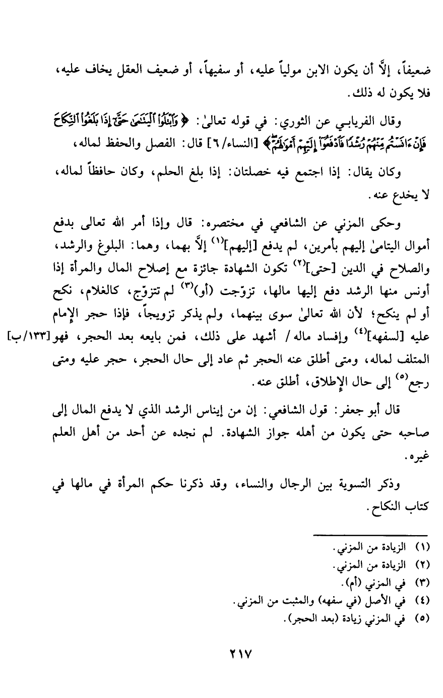قَالَ أَبُو جَعْفَر قَول الشَّافِعِي إِن من إيناس الرشد الَّذِي لَا يدْفع المَال إِلَى صَاحبه حَتَّى يكون من أَهله جَوَاز الشَّهَادَة لم نجده عَن أحد من أهل الْعلم غَيره