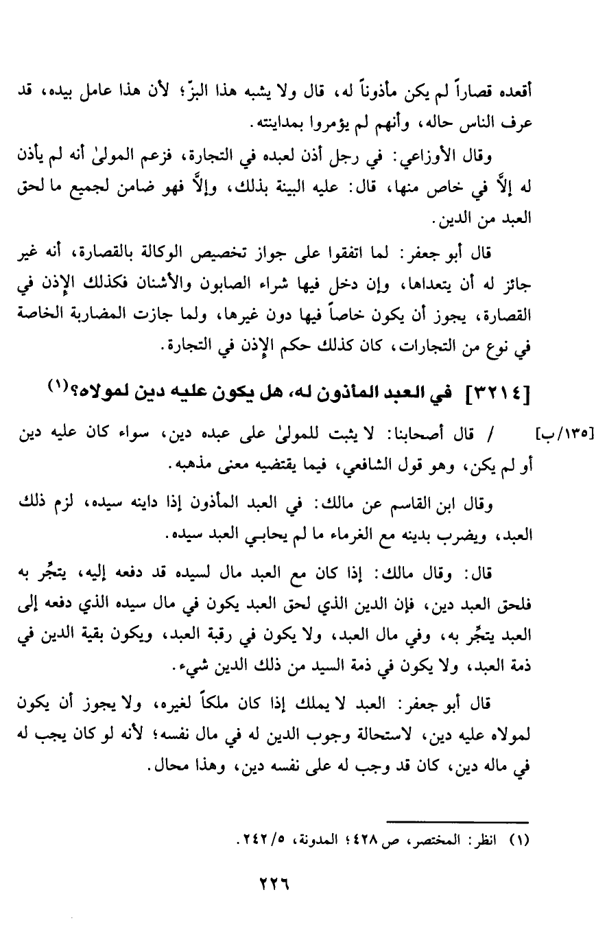 2314 - فِي العَبْد الْمَأْذُون لَهُ هَل يكون عَلَيْهِ دين لمَوْلَاهُ