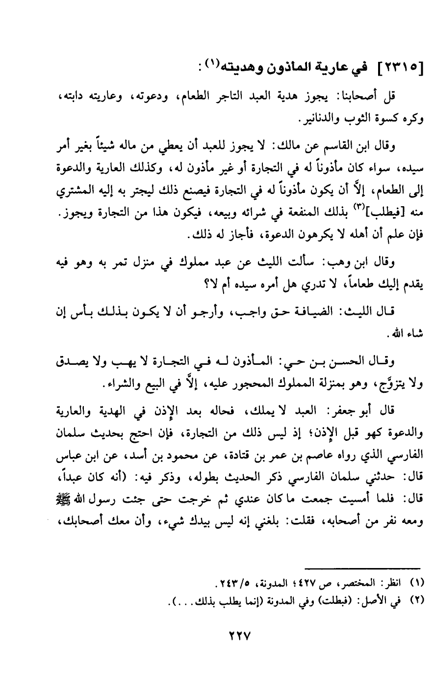 2315 - فِي عَارِية الْمَأْذُون وهديته
