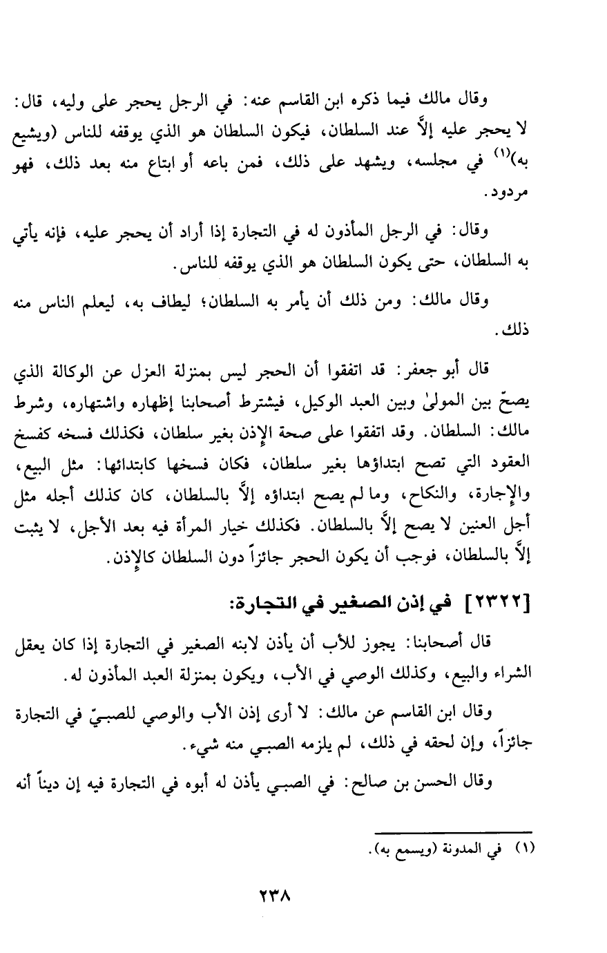 2322 - فِي إِذن الصَّغِير فِي التِّجَارَة