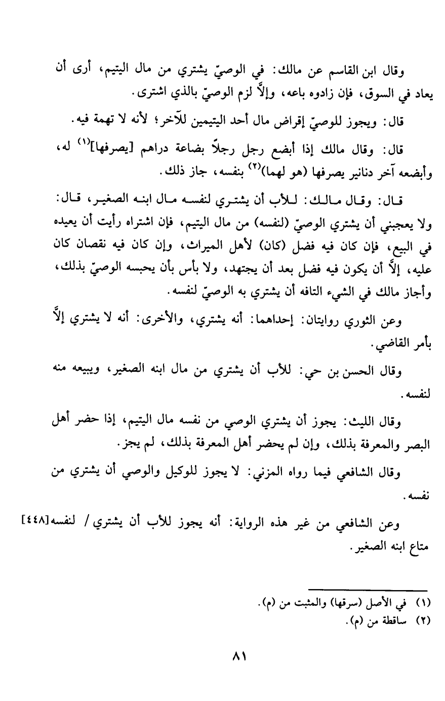وَعَن الثَّوْريّ رِوَايَتَانِ إِحْدَاهمَا أَنه يَشْتَرِي وَالْأُخْرَى أَنه لَا يَشْتَرِي إِلَّا بِأَمْر القَاضِي