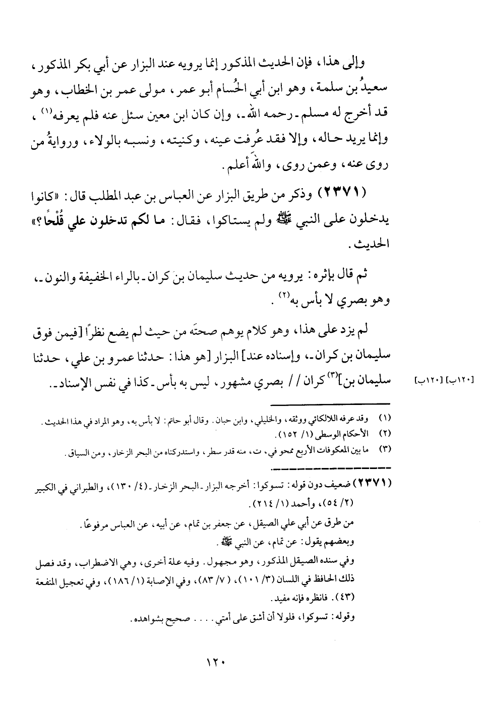 (2371) وَذكر من طَرِيق الْبَزَّار عَن الْعَبَّاس بن عبد الْمطلب قَالَ: " كَانُوا يدْخلُونَ على النَّبِي - صَلَّى اللَّهُ عَلَيْهِ وَسَلَّم َ - وَلم يستاكوا، فَقَالَ: مَا لكم تدخلون عَليّ قلحاً؟ " الحَدِيث.