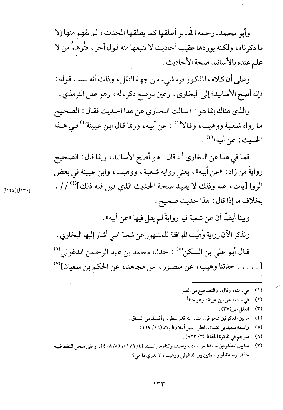 وَالَّذِي هُنَاكَ إِنَّمَا هُوَ: " سَأَلت البُخَارِيّ عَن هَذَا الحَدِيث فَقَالَ: الصَّحِيح مَا رَوَاهُ شُعْبَة ووهيب، وَقَالا: عَن أَبِيه، وَرُبمَا قَالَ ابْن عُيَيْنَة فِيهِ هَذَا الحَدِيث: عَن أَبِيه ".