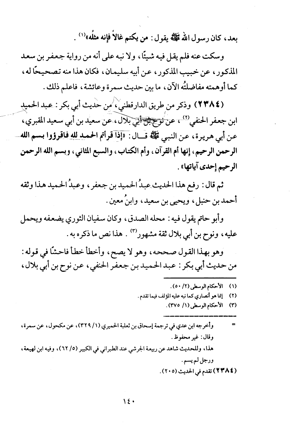 (2384) وَذكر من طَرِيق الدَّارَقُطْنِيّ، من حَدِيث أبي بكر: عبد الحميد ابْن جَعْفَر الْحَنَفِيّ، عَن نوح بن أبي بِلَال، عَن سعيد بن أبي سعيد المَقْبُري، عَن أبي هُرَيْرَة، عَن النَّبِي - صَلَّى اللَّهُ عَلَيْهِ وَسَلَّم َ - قَالَ: " إِذا قَرَأْتُمْ الْحَمد لله فاقرؤوا بِسم الله الرَّحْمَن الرَّحِيم، إِنَّهَا أم الْقُرْآن، وَأم الْكتاب، والسبع المثاني، وبسم الله الرَّحْمَن الرَّحِيم إِحْدَى آياتها ".