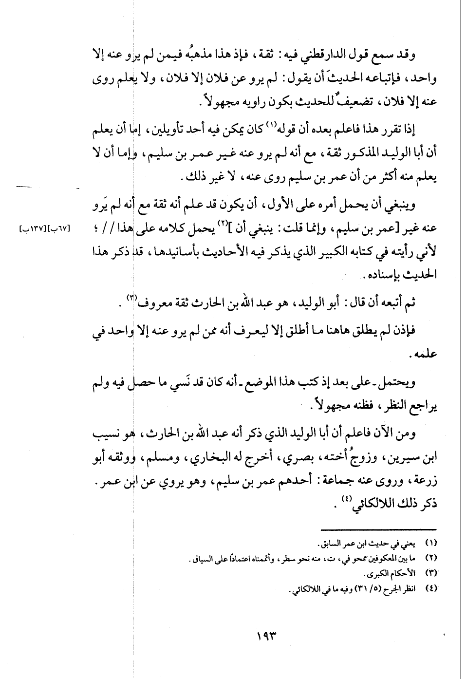 وَمن الْآن فَاعْلَم أَن أَبَا الْوَلِيد الَّذِي ذكر أَنه عبد الله بن الْحَارِث، هُوَ نسيب ابْن سِيرِين، وَزوج أُخْته، بَصرِي، أخرج لَهُ البُخَارِيّ، وَمُسلم، وَوَثَّقَهُ أَبُو زرْعَة، وروى عَنهُ جمَاعَة: أحدهم عمر بن سليم، وَهُوَ يروي عَن ابْن عمر. ذكر ذَلِك اللالكائي.