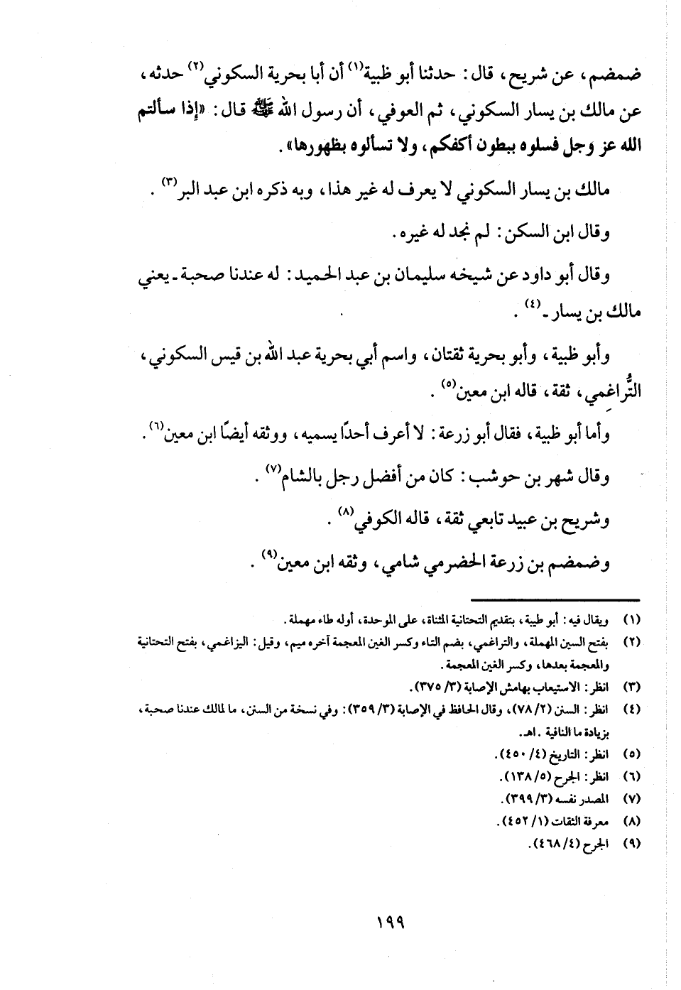 وَأَبُو ظَبْيَة، وَأَبُو بحريّة ثقتان، وَاسم أبي بحريّة عبد الله بن قيس السكونِي، التراغمي، ثِقَة، قَالَه ابْن معِين. وَأما أَبُو ظَبْيَة، فَقَالَ أَبُو زرْعَة: لَا أعرف أحدا يُسَمِّيه، وَوَثَّقَهُ أَيْضا ابْن معِين وَقَالَ شهر بن حَوْشَب: كَانَ من أفضل رجل بِالشَّام. وَشُرَيْح بن عبيد تَابِعِيّ ثِقَة، قَالَه الْكُوفِي. وضمضم بن زرْعَة الْحَضْرَمِيّ شَامي، وثقة ابْن معِين.