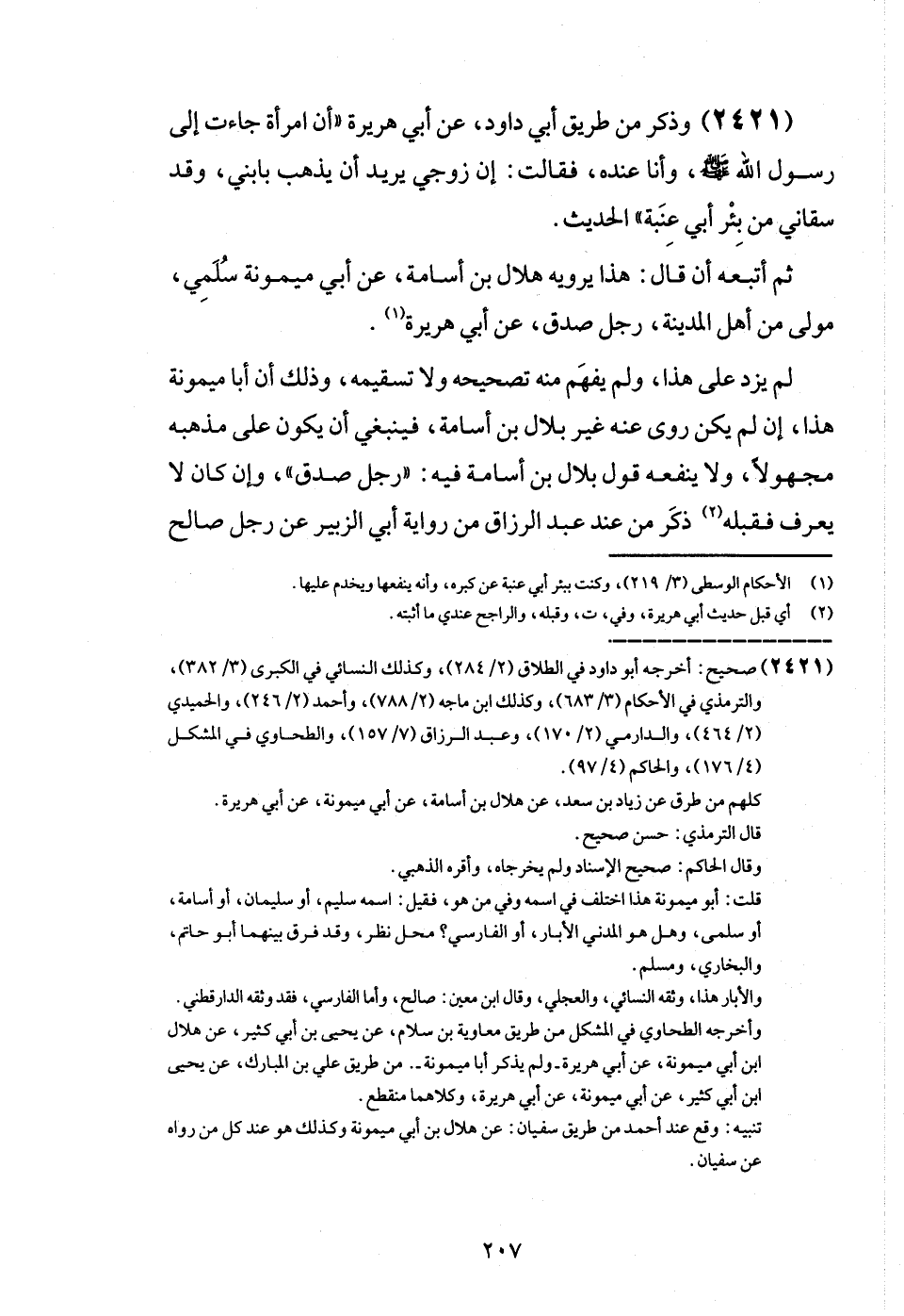 (2421) وَذكر من طَرِيق أبي دَاوُد، عَن أبي هُرَيْرَة " أَن امْرَأَة جَاءَت إِلَى رَسُول الله - صَلَّى اللَّهُ عَلَيْهِ وَسَلَّم َ -، وَأَنا عِنْده، فَقَالَت: إِن زَوجي يُرِيد أَن يذهب بِابْني، وَقد سقاني من بِئْر أبي عنبة " الحَدِيث.