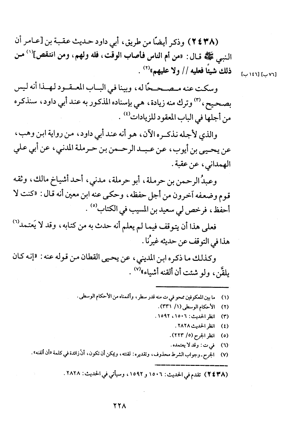 (2438) وَذكر أَيْضا من طَرِيق، أبي دَاوُد حَدِيث عقبَة بن [عَامر أَن النَّبِي - صَلَّى اللَّهُ عَلَيْهِ وَسَلَّم َ - قَالَ: " من أم النَّاس فَأصَاب الْوَقْت، فَلهُ وَلَهُم، وَمن انْتقصَ] من ذَلِك شَيْئا فَعَلَيهِ وَلَا عَلَيْهِم ".
