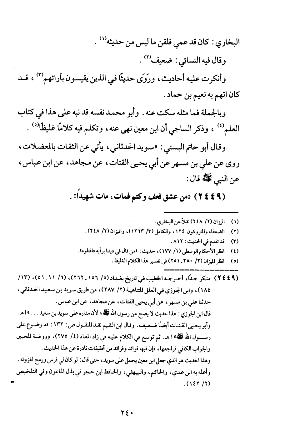 (2449) " من عشق فعف وكتم فَمَاتَ، مَاتَ شَهِيدا "