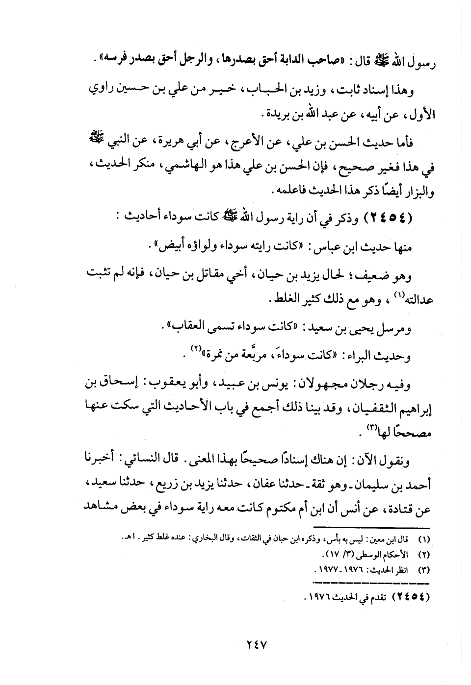(2454) وَذكر فِي أَن راية رَسُول الله - صَلَّى اللَّهُ عَلَيْهِ وَسَلَّم َ - كَانَت سَوْدَاء أَحَادِيث: