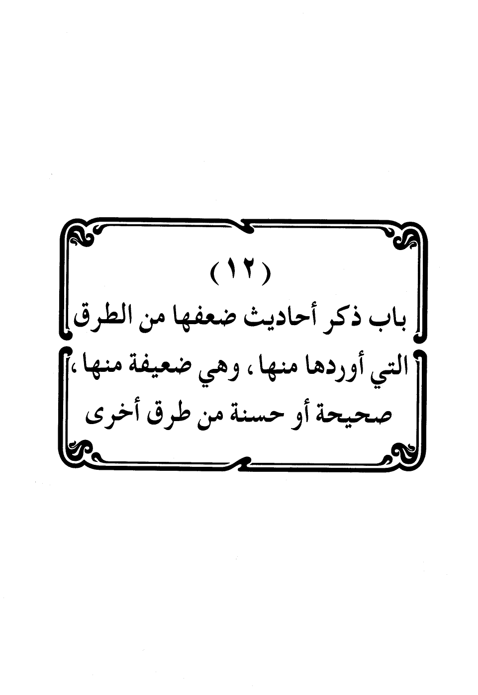 (12) بَاب ذكر أَحَادِيث ضعفها من الطّرق الَّتِي أوردهَا مِنْهَا، وَهِي ضَعِيفَة مِنْهَا، صَحِيحَة أَو حَسَنَة من طرق أُخْرَى