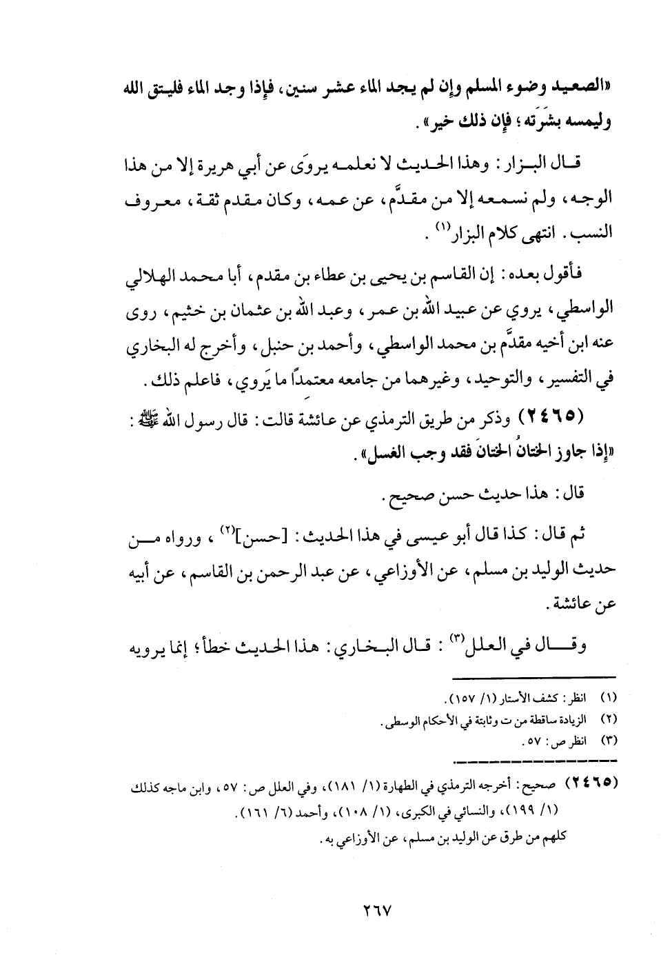 (2465) وَذكر من طَرِيق التِّرْمِذِيّ عَن عَائِشَة قَالَت: قَالَ رَسُول الله - صَلَّى اللَّهُ عَلَيْهِ وَسَلَّم َ -: " إِذا جَاوز الْخِتَان الْخِتَان فقد وَجب الْغسْل ".