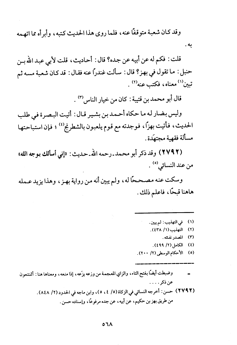 وَسكت عَنهُ مصححا لَهُ، وَلم يبين أَنه من رِوَايَة بهز، وَهَذَا يزِيد عمله هَاهُنَا قبحا، فَاعْلَم ذَلِك.