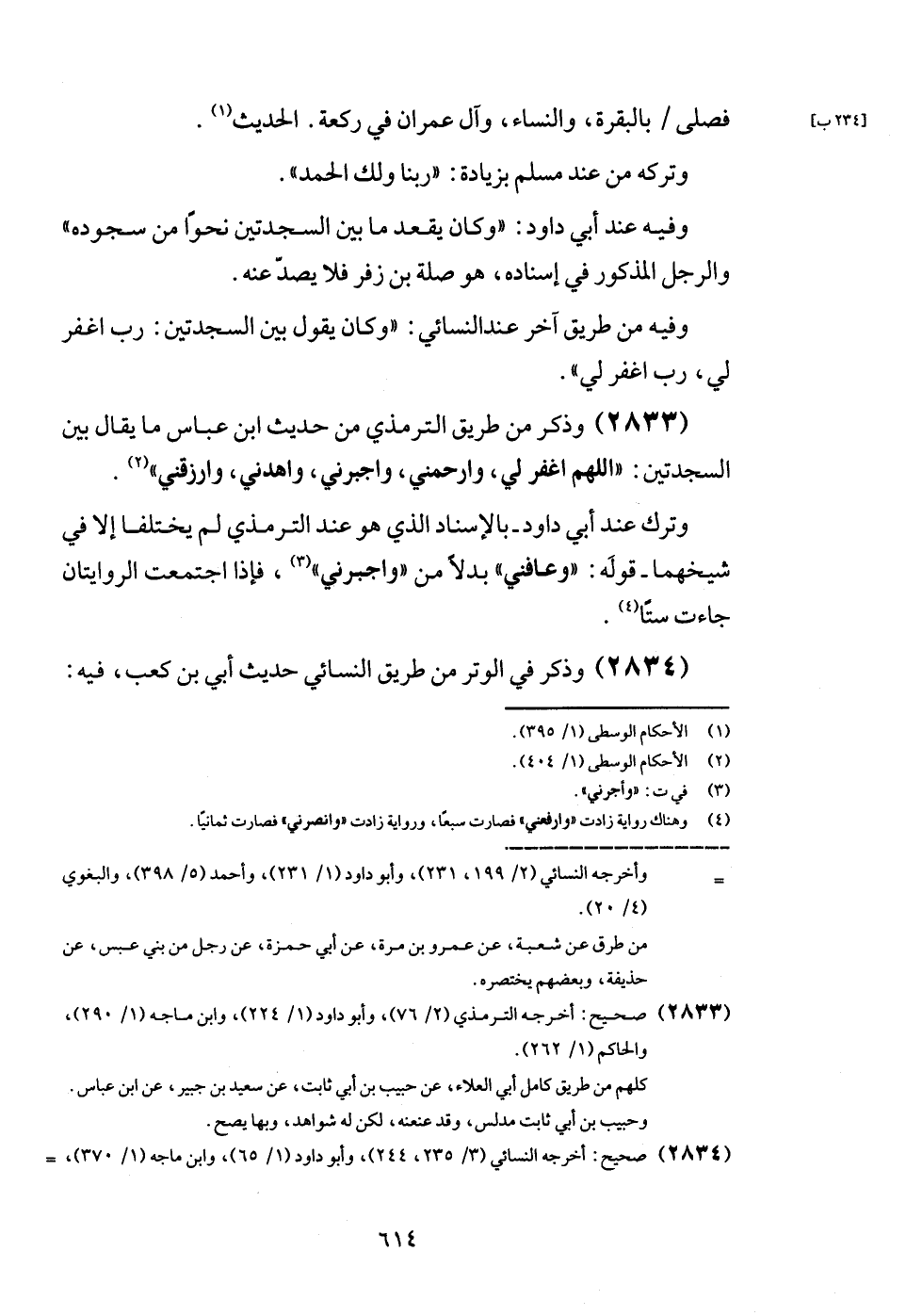 (2833) وَذكر من طَرِيق التِّرْمِذِيّ من حَدِيث ابْن عَبَّاس مَا يُقَال بَين السَّجْدَتَيْنِ: " اللَّهُمَّ اغْفِر لي، وارحمني، واجبرني، واهدني، وارزقني ".