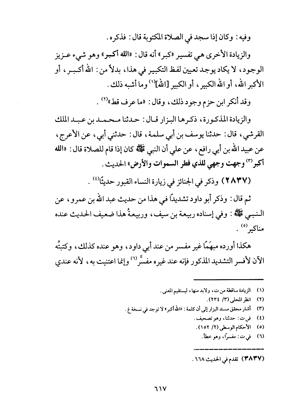 وَالزِّيَادَة الْأُخْرَى هِيَ تَفْسِير " كبر " أَنه قَالَ: " الله أكبر " وَهُوَ شَيْء عَزِيز الْوُجُود، لَا يكَاد يُوجد تعْيين لفظ التَّكْبِير فِي هَذَا، بَدَلا من: الله أكبر، أَو الْأَكْبَر الله، أَو الله الْكَبِير، أَو الْكَبِير [الله] وَمَا أشبه ذَلِك.