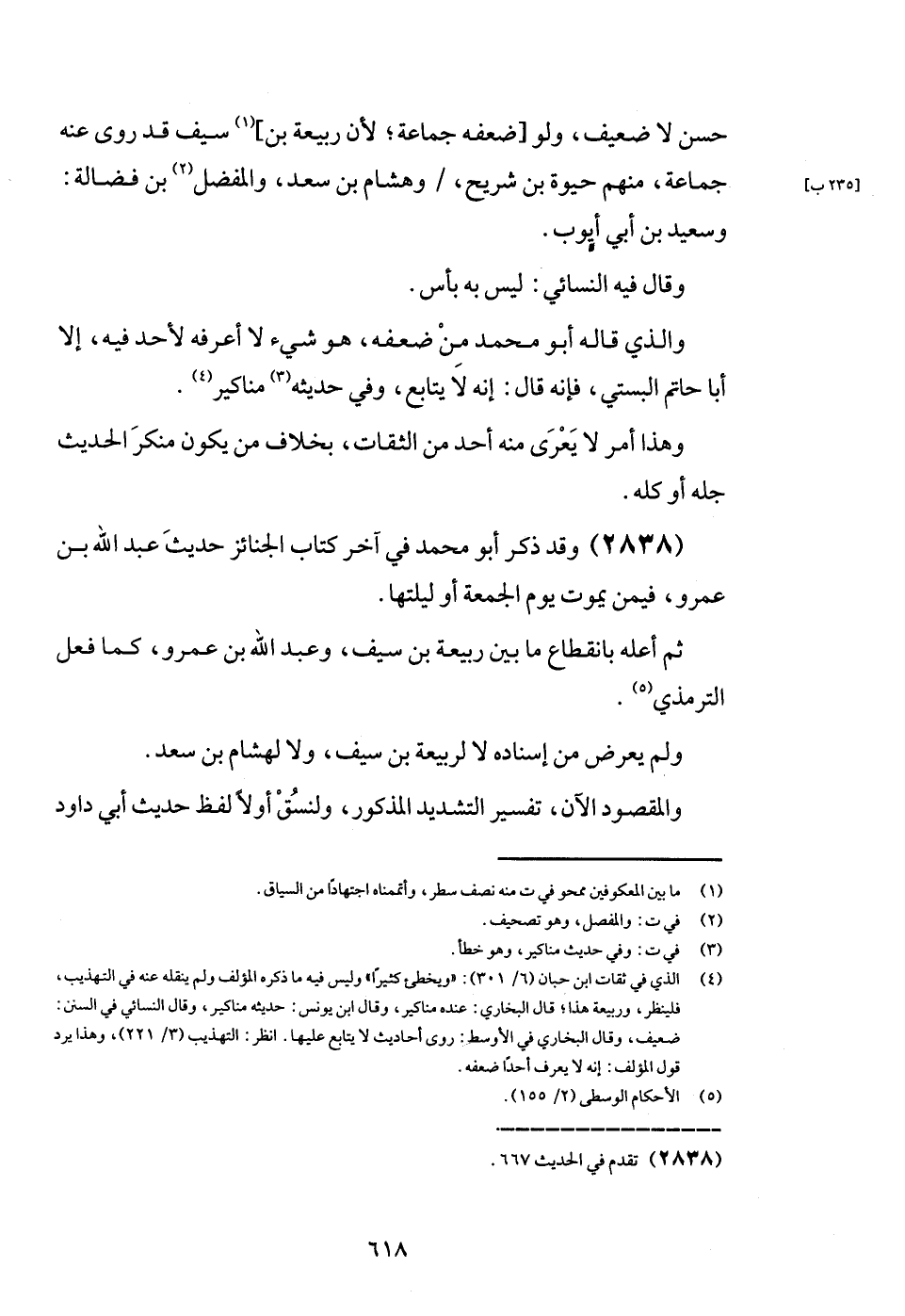 حسن لَا ضَعِيف، وَلَو [ضعفه جمَاعَة؛ لِأَن ربيعَة بن] سيف قد روى عَنهُ جمَاعَة، مِنْهُم حَيْوَة بن شُرَيْح، / وَهِشَام بن سعد، والمفضل بن فضَالة: وَسَعِيد بن أبي أَيُّوب.