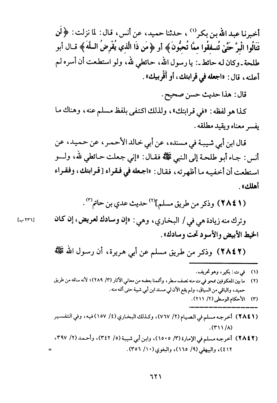 (2842) وَذكر من طَرِيق مُسلم عَن أبي هُرَيْرَة، أَن رَسُول الله - صَلَّى اللَّهُ عَلَيْهِ وَسَلَّم َ -