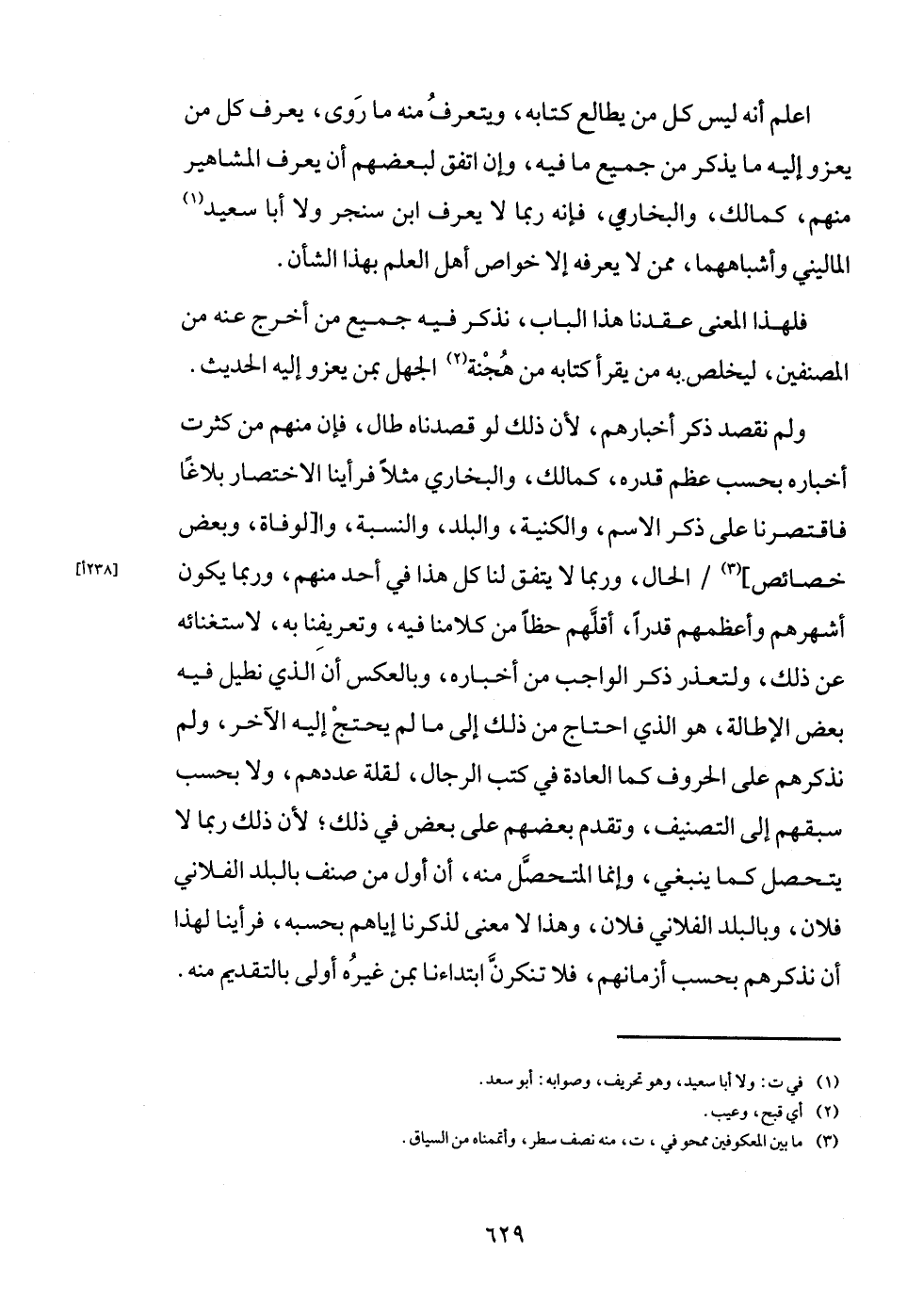 اعْلَم أَنه لَيْسَ كل من يطالع كِتَابه، ويتعرف مِنْهُ مَا روى، يعرف كل من يَعْزُو إِلَيْهِ مَا يذكر من جَمِيع مَا فِيهِ، وَإِن اتّفق لبَعْضهِم أَن يعرف الْمَشَاهِير مِنْهُم، كمالك، وَالْبُخَارِيّ، فَإِنَّهُ رُبمَا لَا يعرف ابْن سنجر وَلَا أَبَا سعيد الْمَالِينِي وأشباههما، مِمَّن لَا يعرفهُ إِلَّا خَواص أهل الْعلم بِهَذَا الشَّأْن.