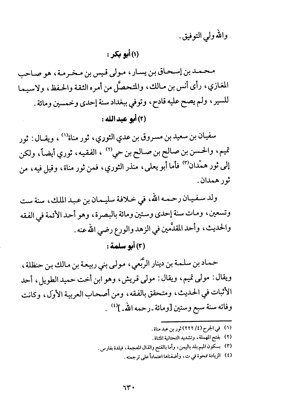 حَمَّاد بن سَلمَة بن دِينَار الربعِي، مولى بني ربيعَة بن مَالك بن حَنْظَلَة، وَيُقَال: مولى تَمِيم، وَيُقَال: مولى قُرَيْش، وَهُوَ ابْن أُخْت حميد الطَّوِيل، أحد الْأَثْبَات فِي الحَدِيث، ومتحقق بالفقه، وَمن أَصْحَاب الْعَرَبيَّة الأول، وَكَانَت وَفَاته سنة سبع وَسِتِّينَ [وَمِائَة - رَحمَه الله -]