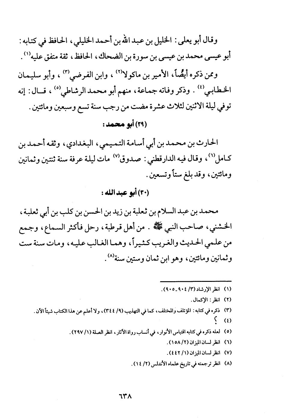 الْحَارِث بن مُحَمَّد بن أبي أُسَامَة التَّمِيمِي، الْبَغْدَادِيّ، وثقة أَحْمد بن كَامِل، وَقَالَ فِيهِ الدَّارَقُطْنِيّ: صَدُوق مَاتَ لَيْلَة عَرَفَة سنة ثِنْتَيْنِ وَثَمَانِينَ وَمِائَتَيْنِ، وَقد بلغ سِتا وَتِسْعين.