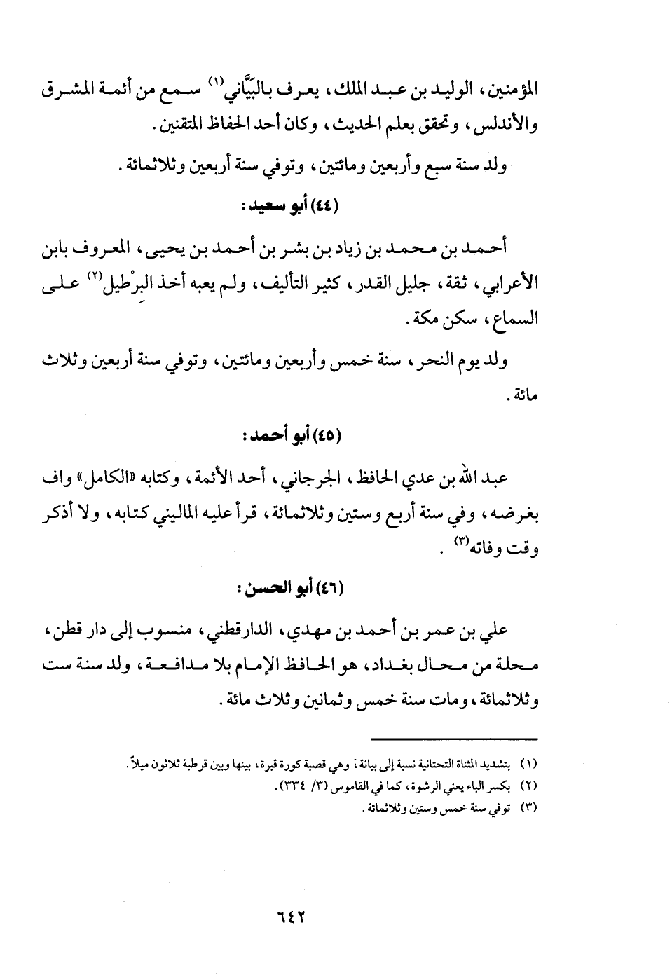 الْمُؤمنِينَ، الْوَلِيد بن عبد الْملك، يعرف بالبياني سمع من أَئِمَّة الْمشرق والأندلس، وَتحقّق بِعلم الحَدِيث، وَكَانَ أحد الْحفاظ المتقنين. ولد سنة سبع وَأَرْبَعين وَمِائَتَيْنِ، وَتُوفِّي سنة أَرْبَعِينَ وثلاثمائة.