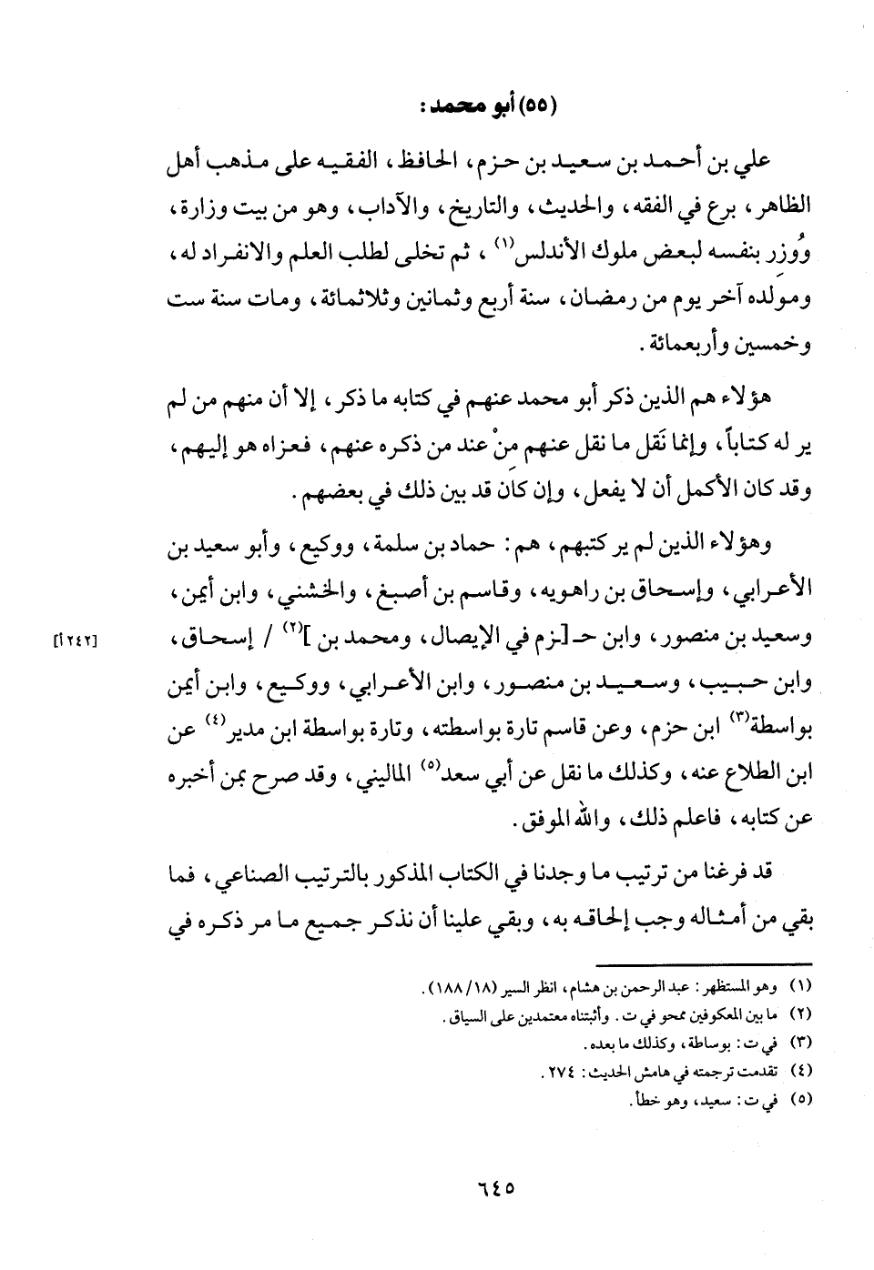 هَؤُلَاءِ هم الَّذين ذكر أَبُو مُحَمَّد عَنْهُم فِي كِتَابه مَا ذكر، إِلَّا أَن مِنْهُم من لم ير لَهُ كتابا، وَإِنَّمَا نقل مَا نقل عَنْهُم من عِنْد من ذكره عَنْهُم، فَعَزاهُ هُوَ إِلَيْهِم، وَقد كَانَ الْأَكْمَل أَن لَا يفعل، وَإِن كَانَ قد بَين ذَلِك فِي بَعضهم.