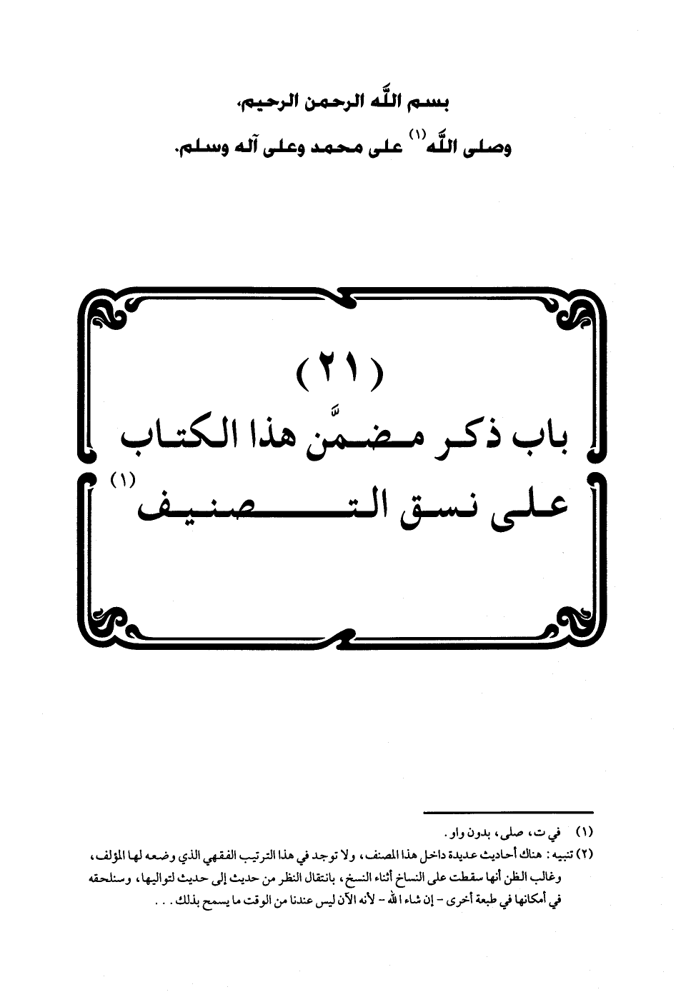 (21) بَاب ذكر مضمن هَذَا الْكتاب على نسق التصنيف