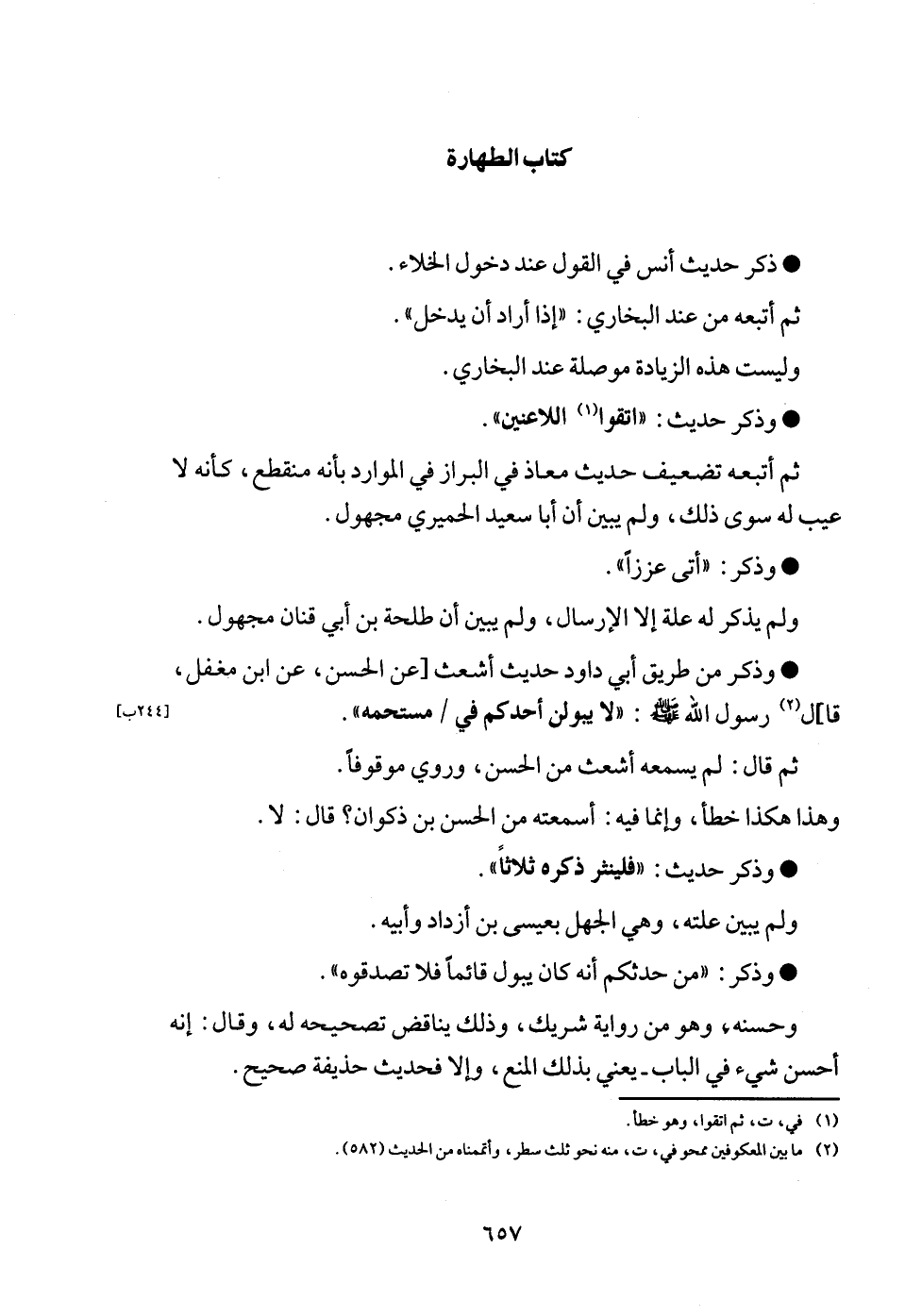 وَلم يذكر لَهُ عِلّة إِلَّا الْإِرْسَال، وَلم يبين أَن طَلْحَة بن أبي قنان مَجْهُول.
