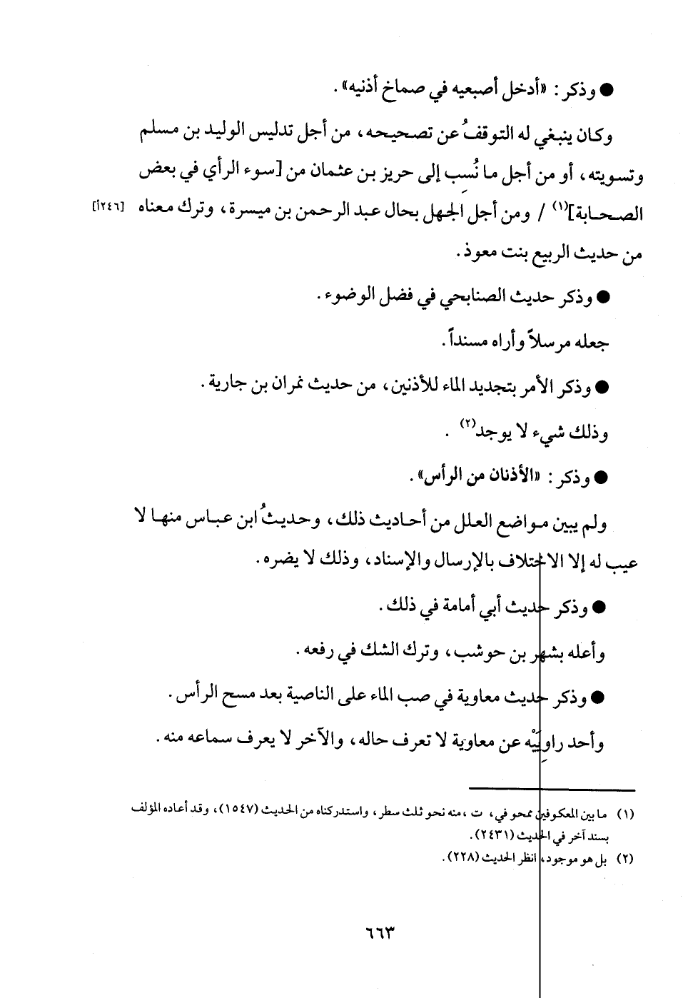وَكَانَ يَنْبَغِي لَهُ التَّوَقُّف عَن تَصْحِيحه، من أجل تَدْلِيس الْوَلِيد بن مُسلم وتسويته، أَو من أجل مَا نسب إِلَى حريز بن عُثْمَان من [سوء الرَّأْي فِي بعض الصَّحَابَة] / وَمن أجل الْجَهْل بِحَال عبد الرَّحْمَن بن ميسرَة، وَترك مَعْنَاهُ من حَدِيث الرّبيع بنت معوذ.