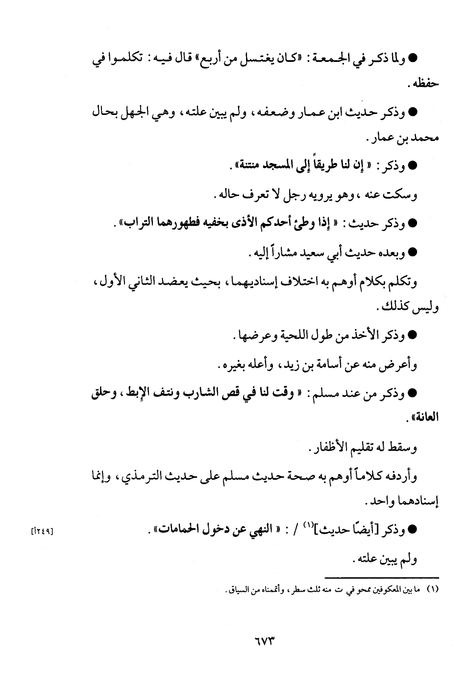 وَذكر حَدِيث ابْن عمار وَضَعفه، وَلم يبين علته، وَهِي الْجَهْل بِحَال مُحَمَّد بن عمار.