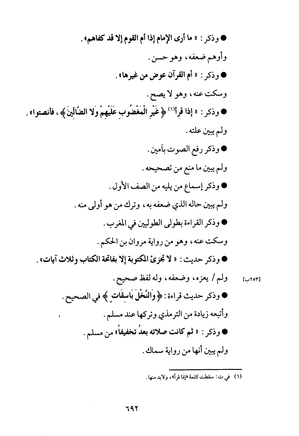 وَذكر حَدِيث: " لَا تُجزئ الْمَكْتُوبَة إِلَّا بِفَاتِحَة الْكتاب وَثَلَاث آيَات ".