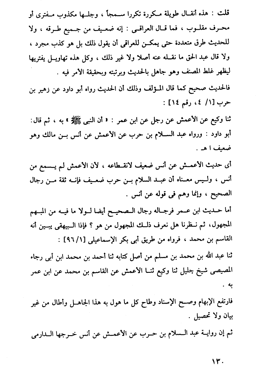 قلت: هذه أنقال طويلة مكررة تكررا سمجًا، وجلها مكذوب مفترى أو محرف مقلوب، فما قال العراقى: إنه ضعيف من جميع طرقه، ولا للحديث طرق متعددة حتى يمكن للعراقى أن يقول ذلك بل هو كذب مجرد، ولا قال عبد الحق ما نقله عنه أصلا ولا غير ذلك، وكل هذه تهاويل يفتريها ليظهر غلط المصنف وهو جاهل بالحديث وبرتبته وبحقيقة الأمر فيه.