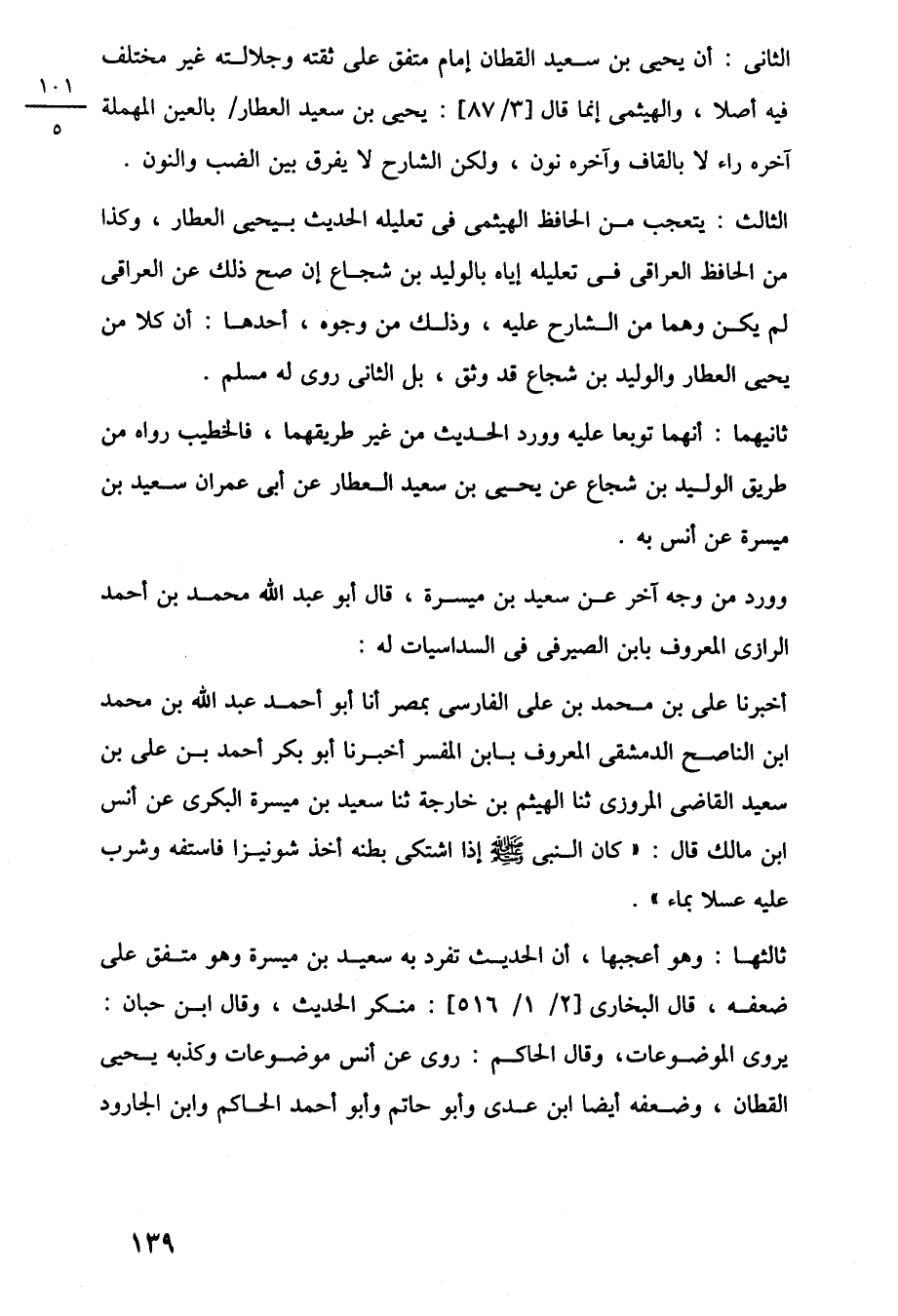 الثانى: أن يحيى بن سعيد القطان إمام متفق على ثقته وجلالته غير مختلف فيه أصلا، والهيثمى إنما قال [3/ 87]: يحيى بن سعيد العطار بالعين المهملة آخره راء لا بالقاف وآخره نون، ولكن الشارح لا يفرق بين الضب والنون.