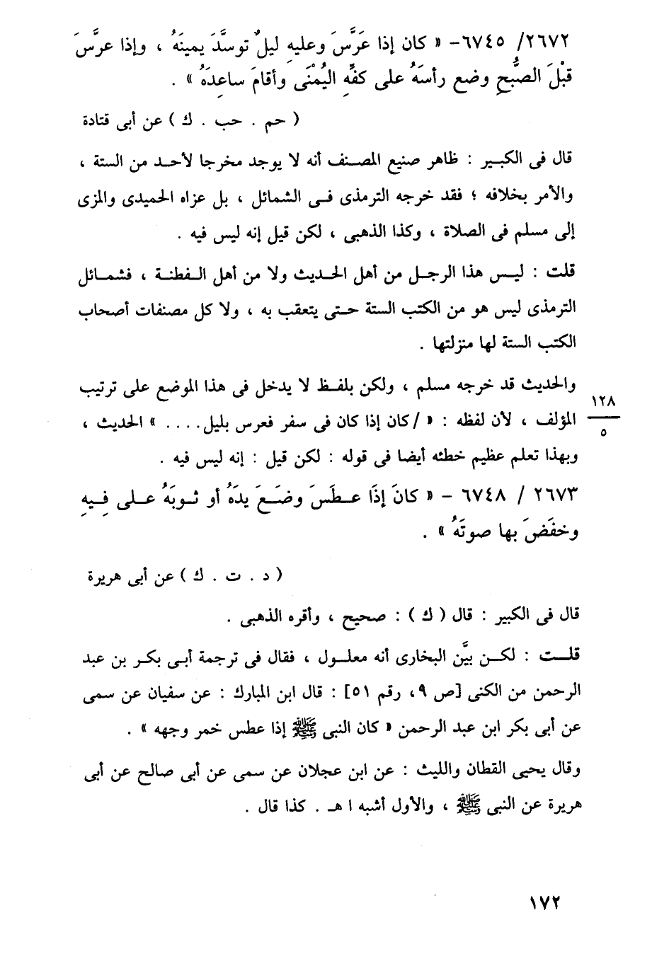 قلت: ليس هذا الرجل من أهل الحديث ولا من أهل الفطنة، فشمائل الترمذى ليس هو من الكتب الستة حتى يتعقب به، ولا كل مصنفات أصحاب الكتب الستة لها منزلتها.